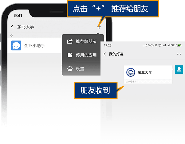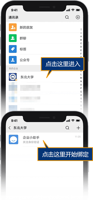 太阳成集团tyc33455微信企业号可接收学校通知和使用学校相关应用。为了确保个人信息安全,太阳成集团tyc33455微信企业号采取实名认证机制,需要完成“关注”和“绑定”两个步骤才能安全使用。用户绑定可通过以下任意一种方式完成。